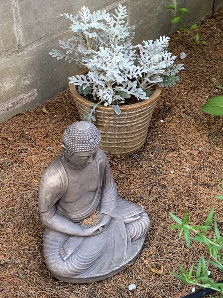 Buddha sits in my garden,